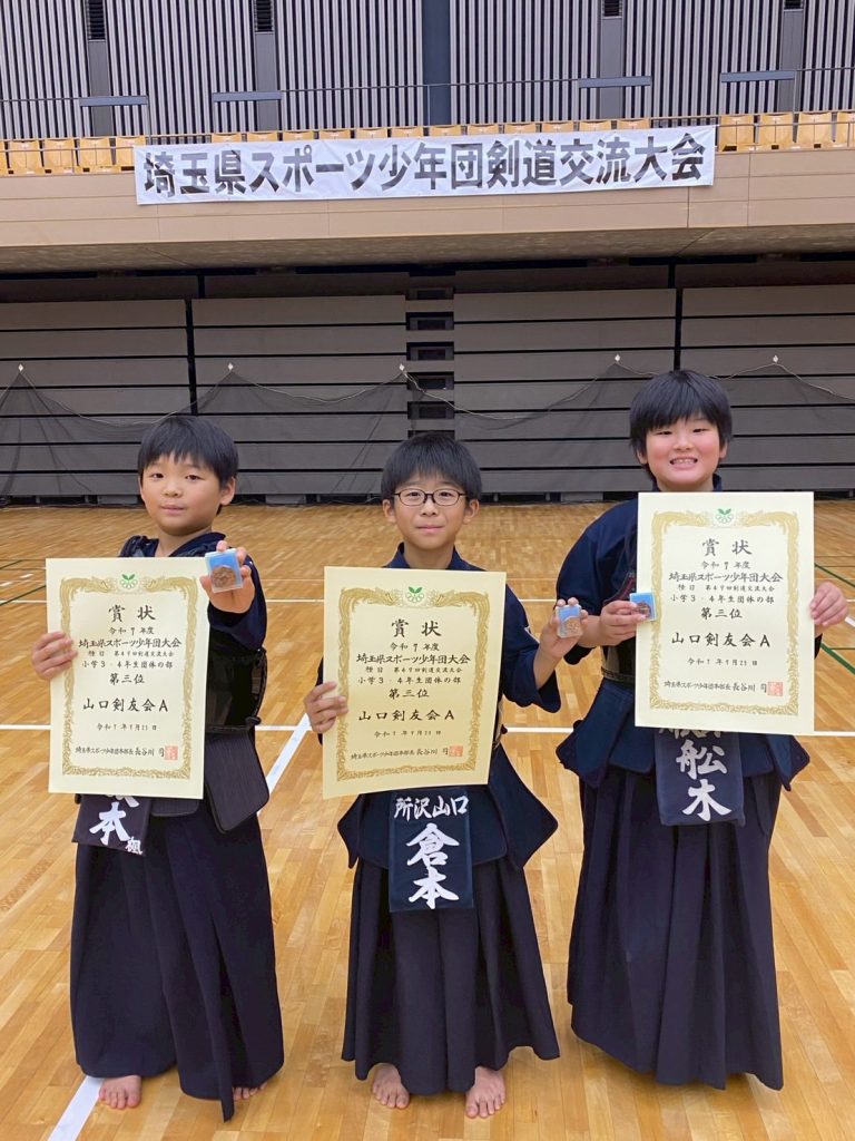 6年生の部にて、第1位、第2位。4年生の部で第3位、第4位、第5位となりました。 4年生の部では勝ち点が同じで4位決めを山剣同士が行い、延長の末に面が決まるという素晴らしい試合となりました。第3位までの選手は11月2日の令和7年度第23回埼玉県剣道大会に出場します。