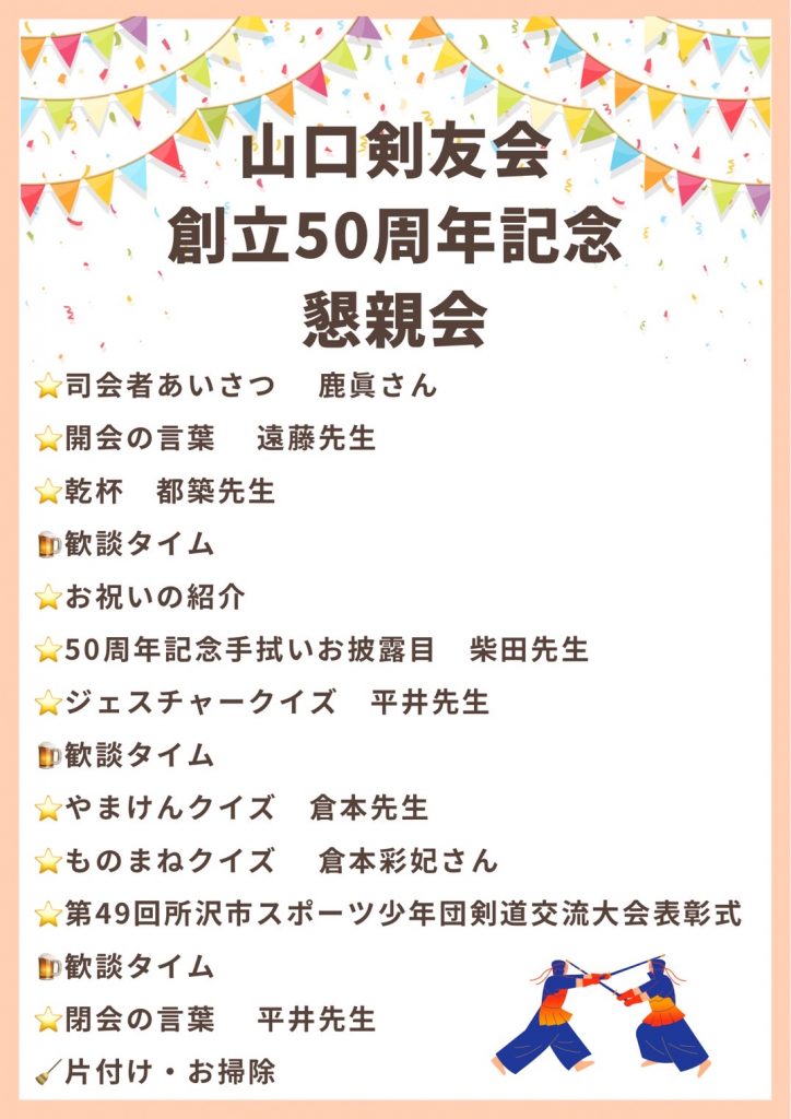 山口剣友会は今年で設立50周年となり、それを記念し9月14日に50周年記念パーティーを行いました。