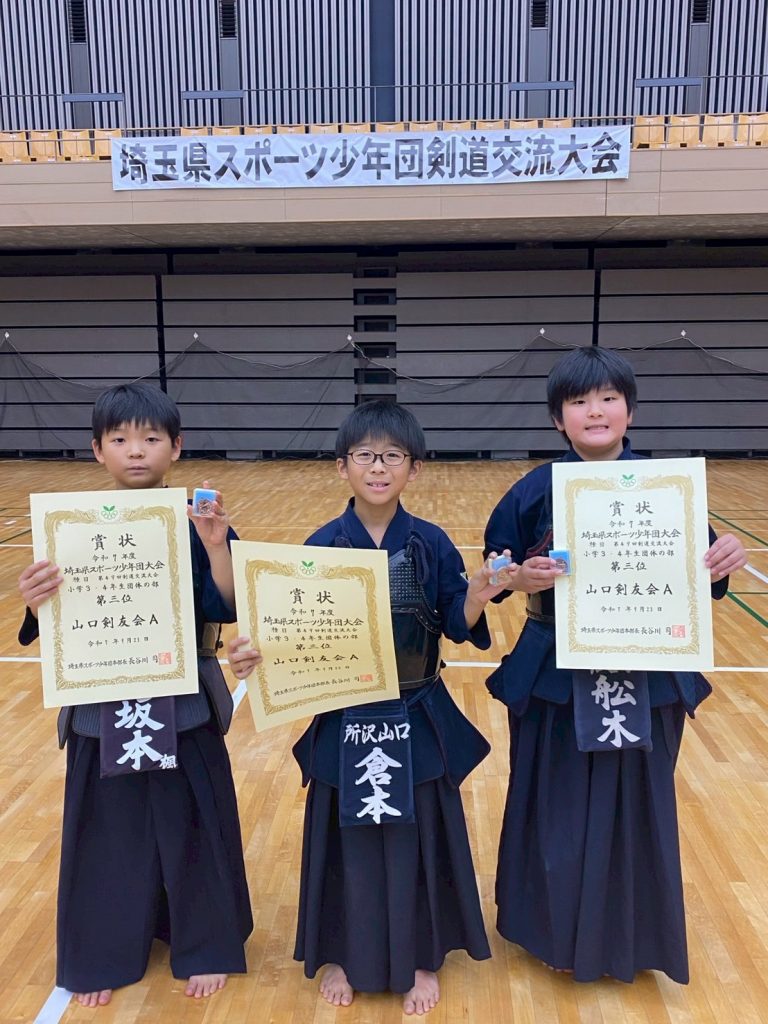結果としては、小学3・4年生団体の部で山口剣友会Aが予選リーグを第一位で勝ち抜き、三位に入賞しました。前の一人が頑張った結果を、次の人が受け継ぐ試合ができました。試合でできたことは、自信につながっていくでしょう。また、今回結果が出なかった人・チームも今回の結果を踏まえてまた頑張っていきましょう。